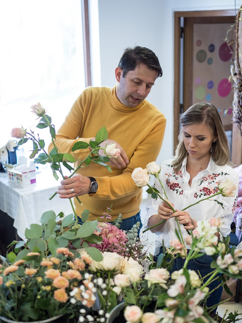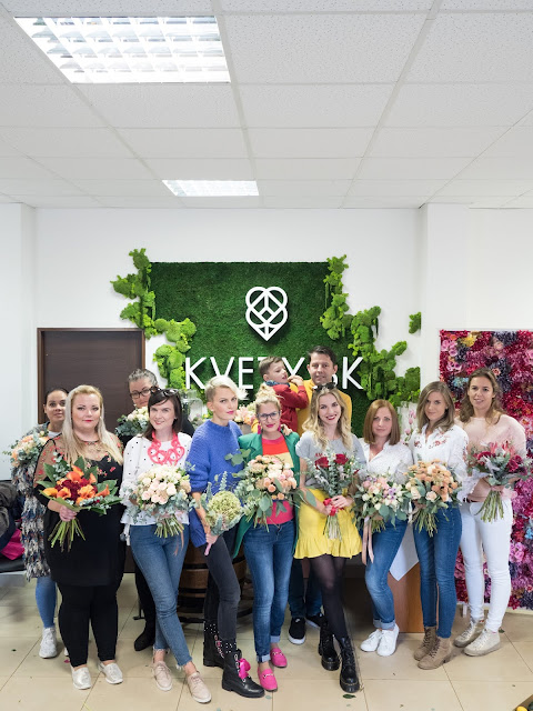 Poďme však pekne poporiadku… kvetinový workshop bola súčasť môjho ambasádorstva so Zlatou studňou. O ňom si môžete prečítať TU ♥ Workshop bol vyvrcholením úžasného dňa rovnako so Zlatou studňou. Začal sa už v Bratislave, odkiaľ sa ostatné ambasádorky previezli Fordom do obce Vígľaš. Ja som sa k nim pridala na obed a krásnu prehliadku na Vígľašskom zámku. Ako určite viete, bývam neďaleko. Dôvodom bolo aj to, že workshop sa konal v sídle Kvety.sk a to je tiež tu na strednom Slovenksu, v obci Kriváň. Po výbornom obede sme sa teda presunuli tam. Srdečne nás privítal majiteľ Kvety.sk, Miroslav Očenáš. On sám dokonca celý workshop viedol. Poskytol nám veľa cenných rád ohľadom starostlivosti o kvety až po farebné kombinácie.