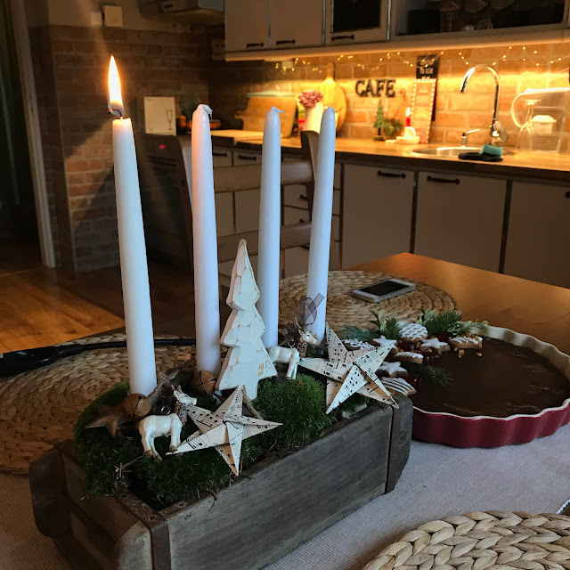 Narychlo jsem udělala alepoň adventní svícínek na stůl a dozdobila dortík připravený předem.
