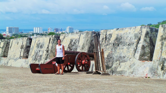 Hrad (Castillo San Felipe de Brajas – 15. století) nás naprosto nadchnul – obrovskej!!! Spousta sklepení – lítáme tam jak prdlí, bafáme na sebe a řehtáme se jak paka – po tom se mi tak stejskalo!!! Hlásím – Steve je zpět!!!! 😉 Po hodince a půl objevování ale vídím, že toho má dost a tak pomalu ťapkáme zpátky do hostelu. Vedu si ho za ruku, koupíme mu jahodovo-lulový smoothy (lulo – jedno zdejší ovoce) – a spokojeně ho odkládám zpět do klimatizovaného pokoje, kde se šťastně chumlá do polštáře. Lehám vedle něj… Koukne na mě a říká: „Miluju Tě…“ se slzama v očích na něj kouknu a upustím špunt svejm emocím, který ve mně tak dlouho dřímaj – tulím se k němu a říkám, jak jsem ráda, že je zpět… Omlouvá se, hladí mě po vlasech – a je nám úplně jedno, že jsou v pokoji další lidé, kterým to může být nepříjemný – prostě tam ležíme v objetí, pusinkujeme se a je nám moc dobře… V tento okamžik nám opravdu chybí private room … 🙁