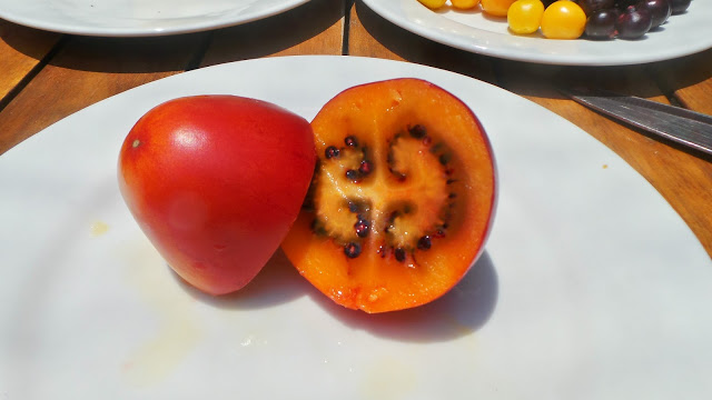 TOMATE DE ARBOL – divný rajče (ovoce) – syrové nechutná dobře ( prý se z toho dělá džus ) prdím na to, letí to do koše – a tak krásně to vypadalo!