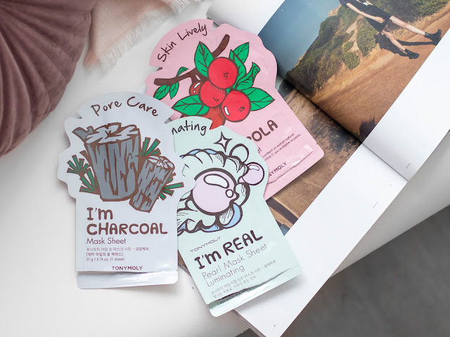 Tony Moly *I’m Real zklidňující maska, Tony Moly *I’m Charcoal maska s uhlím a Tony Moly *I’m Acerola maska na rozzáření pleti. Všechny tři masky mi přišly podobné. Subjektivně se mi nejvíc líbila maska s uhlím, ale opět průměr. Navíc, plátýnko u jedné z masek se mi při aplikaci roztrhlo, což se mi stalo vůbec poprvé.