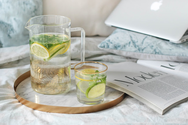 Ráno začínám čajem, po snídani černou neslazenou kávou bez mléka a přes den piji už jen vodu. Večer, když se potřebuju zahřát, sáhnu po bylinkových čajích. Jinak po ochucené vodě s lístky máty a citrusy. Poslední dobou jsem si hodně oblíbila kokosovou vodu, která pomáhá při detoxu a anti agingu, protože hydratuje buňky zevnitř díky obsahu látek a důležitých minerálů.