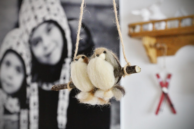 Ptáčci na větvičce z ovčího rouna