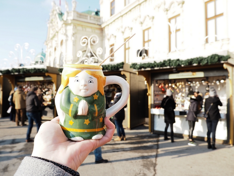 A kdyby vás zajímaly hrníčky. Nemůžu se rozhodnout, jestli jsou škaredý, nebo roztomilý. Andělíček je fajn, ale ta kombinace zelené a žluté se mi nějak nezdá 😀 Na druhou stranu, červená a zelená je zas všude. Každopádně! Belvedere obecně, nejen skrz vánoční trhy, silně doporučuju! 🙂