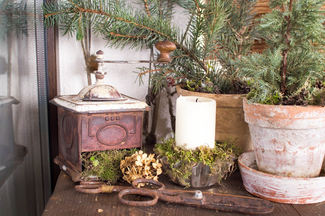 Ako prvé som použila odhrzdovač a hľadala pekne inšpirácie a hľadala a na mlynček zabudla. Po dvoch rokoch som ho vytiahla zo špajze z krabice, pretrela olejom a zakomponovala do jesennej výzdoby. Biely povlak vznikol časom sam.