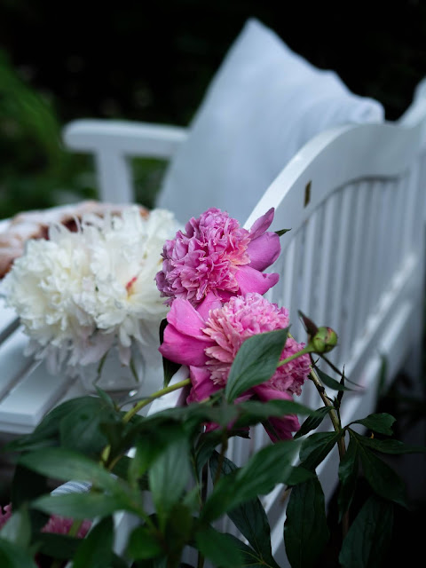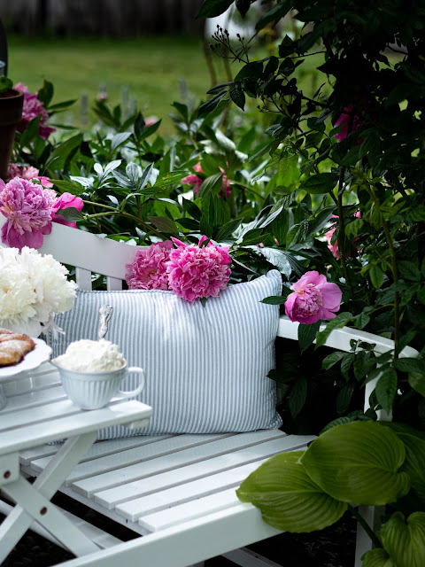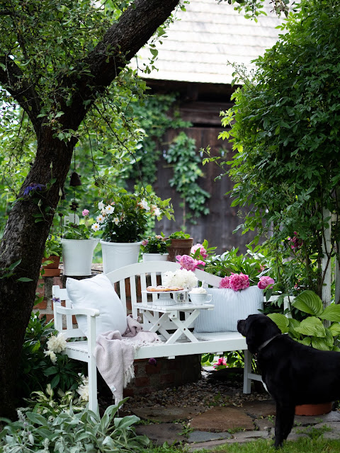 Vyhliadky na krásnu slnečnú nedeľu boli naozaj dobré. Nesmel chýbať tradičný víkendový koláč. Na lavičke, pretože tam práve kvitnú pivonky. O dve hodiny neskôr však situácia v našej dedine nabrala celkom iný smer. Obloha sa zatiahla a prihnala sa prvá silná búrka. Tá so sebou priniesla aj plný potok vody. Voda stekala z polí, zobrala mostík a rýchlo stúpala. Na dvoch miestach začal už potok pretekať ku nám do dvora. Potom sa prehnala ešte ďalšia búrka, pri ktorej som si povedala, že nás tentoraz vytopí. Nebála som sa o dom, pretože ten máme o úroveň vyššie a nie je až taký predpoklad, že by sa voda dostala dnu - maximálne do chodby. Bála som sa však o záhradu. Tú som už raz vytopenú zažila. Koniec bol pre nás našťastie priaznivý a voda sa ku nám nedostala. Doteraz nechápem, ako je to možné. Som za to veľmi vďačná a len dúfam, že aktuálna búrková sezóna čoskoro skončí...