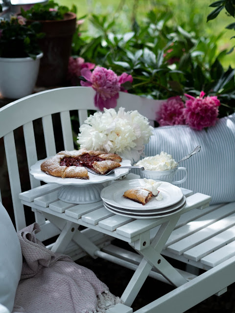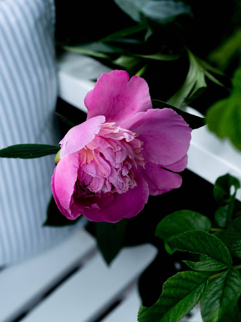 Vyhliadky na krásnu slnečnú nedeľu boli naozaj dobré. Nesmel chýbať tradičný víkendový koláč. Na lavičke, pretože tam práve kvitnú pivonky. O dve hodiny neskôr však situácia v našej dedine nabrala celkom iný smer. Obloha sa zatiahla a prihnala sa prvá silná búrka. Tá so sebou priniesla aj plný potok vody. Voda stekala z polí, zobrala mostík a rýchlo stúpala. Na dvoch miestach začal už potok pretekať ku nám do dvora. Potom sa prehnala ešte ďalšia búrka, pri ktorej som si povedala, že nás tentoraz vytopí. Nebála som sa o dom, pretože ten máme o úroveň vyššie a nie je až taký predpoklad, že by sa voda dostala dnu - maximálne do chodby. Bála som sa však o záhradu. Tú som už raz vytopenú zažila. Koniec bol pre nás našťastie priaznivý a voda sa ku nám nedostala. Doteraz nechápem, ako je to možné. Som za to veľmi vďačná a len dúfam, že aktuálna búrková sezóna čoskoro skončí...