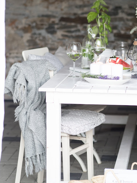 Taktiež som na terasu zadovážila sedacie podušky z Jysk, ktoré sú veľmi pohodlné, či sa rozhodnete ich použiť na stoličku alebo aj na zem ♥ A keďže predsa len občas večer býva chladno, osobne sa nezaobídem bez deky. Čo hovoríte na pletenú deku z Jysk? Ja som si ju zamilovala!