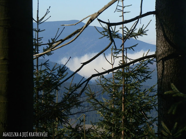 Ona totiž k vrcholu nevede žádná značená trasa (vyrazili jsme z Morávky – parkoviště u Bebků – po modré turistické trase, která se ale před vrcholem stáčí zpátky na Okrouhlice a Skalku) a ani na mapách nic není vidět. Když jsme posledních 500 – 800 metrů stoupali k vrcholu, neměla jsem daleko k pocitu, že stoupáme téměř po kolmici 🙂