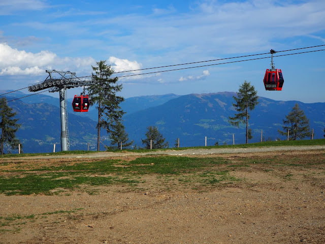 celé léto Bertík doslova "bzučel", že jsme nejeli na horu Goldeck. Jezdívali jsme na něj při každé návštěvě starou lanovkou. Byly to dvě veliké kabiny pro více cestujících, ještě s přestupem v mezistanici, ale my jsme ji měli hodně rádi. A taky v boudě nahoře dělali to nejlepší kafe v celých Kärnten. Jenomže lanovku i boudu letos definitivně zavřeli a nás neobměkčila ani nová kabinková lanovka, kde se dá sednout a vejde se do ní "pouze" 6 lidí ...