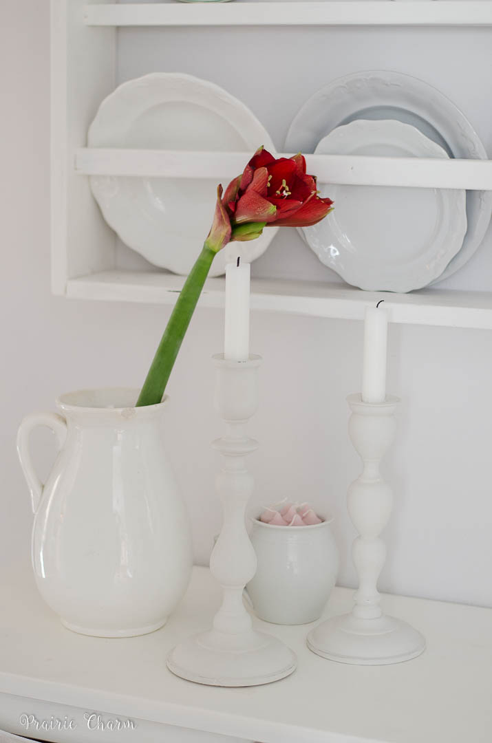 We can`t break our little „tradition“ to bake gingerbread houses. My Ninka loves it so much we can`t have Christmas without them. This year I`m decorating with boxwood. I made a garland and hung it on our platerack. I kind of love the simple look.