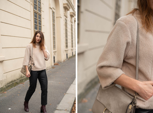 TAM ARA cashmere top, leather trousers (Vinted), Sandro Paris boots, Chloé bag