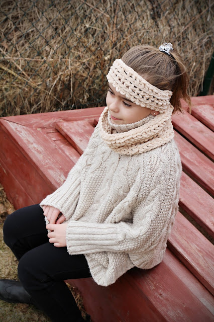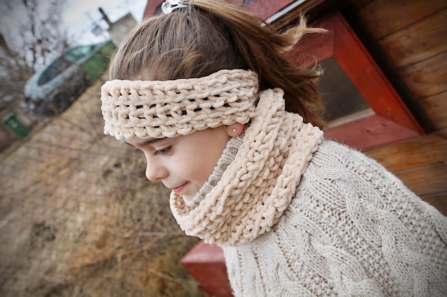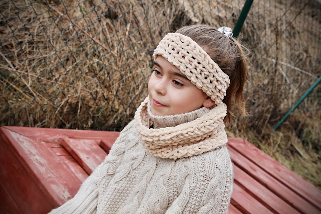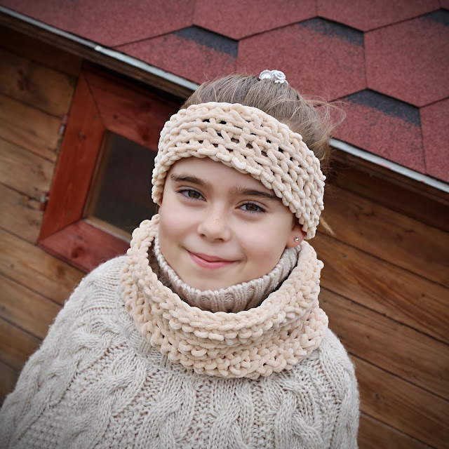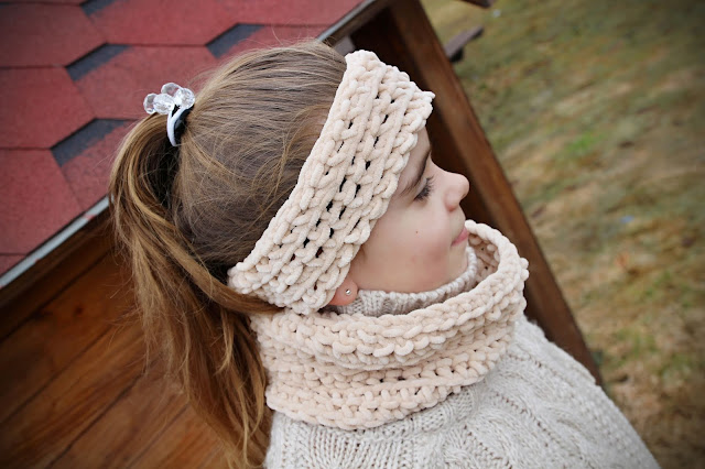 Čelenka a nákrčník z žinilky, která je neskutečně příjemná.