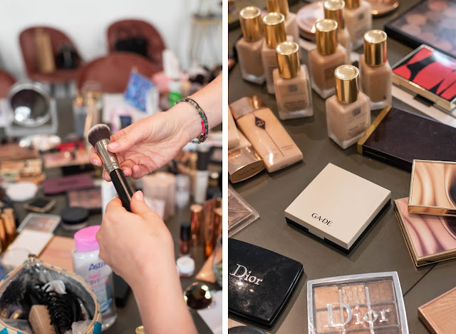 A taky jsem i mezi focením měla možnost alespoň na ruku vyzkoušet nepřeberné množství produktů. Ester si s sebou přivezla celý kosmetický kufr a to je jen ta základní část. Neumím si představit, kolik toho má doma. Ale rozhodně už chápu, jak snadno do toho člověk může spadnout. Co jsem za poslední dobu přičuchla více k líčení a zajímám se o techniku, mám pocit, že potřebuju všechno :D Ono je to totiž jiné, když je vám 15 a vaše pleť je úplně super, hydratovaná a snadno se s ní pracuje. Ale čím jste starší, tím více a lépe musíte přemýšlet nad vhodnými produkty, jejich texturou a dodržovat správné kroky v péči o pleť i její přípravě před samotným makeupem. Už si prostě nevystačíte se základy, které jste si předtím nějak osvojily, aby váš makeup i po třicítce pořád vypadal svěže a nezvýrazňoval vrásky.