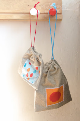 Na jejich výrobu jsem opět použila zbytkový materiál z jiného tvoření – základ je z plátna, které jsme měli na svatbě na stolech jako ubrusy a mám ho doma desítky metrů. Obrázek (samozřejmě by tam nemusel být, ale takhle mi to prostě dělá větší radost!) je z odstřižků z Madlenčiny hrací deky. Byla to celkem rychlovka, nemusela jsem dělat ani tunýlek v horní části, protože ten už tam byl (je to dvakrát zahnutý okraj ubrusu), takže stačilo jenom vhodně nastříhat, obentlovat okraje a sešít je k sobě, protáhnout gumičku a voalááá! Možná bych tam ještě mohla přidat plastovou „zarážku“ s pružinkou, ale zatím to nebylo potřeba, gumička po utažení drží na místě. Pytlíků mám zatím osm, ve dvou velikostech: 20,5×17,5 a 15,5×13,5cm a za pár dnů se chystám do města je poprvé testovat. Snad splní účel a budou mě blažit. A kdybych je náhodou nevytížila na sto procent, mohla bych třeba do některého z nich Madle koupit cvrnkací kuličky. Nebo spíš manželovi? 😉