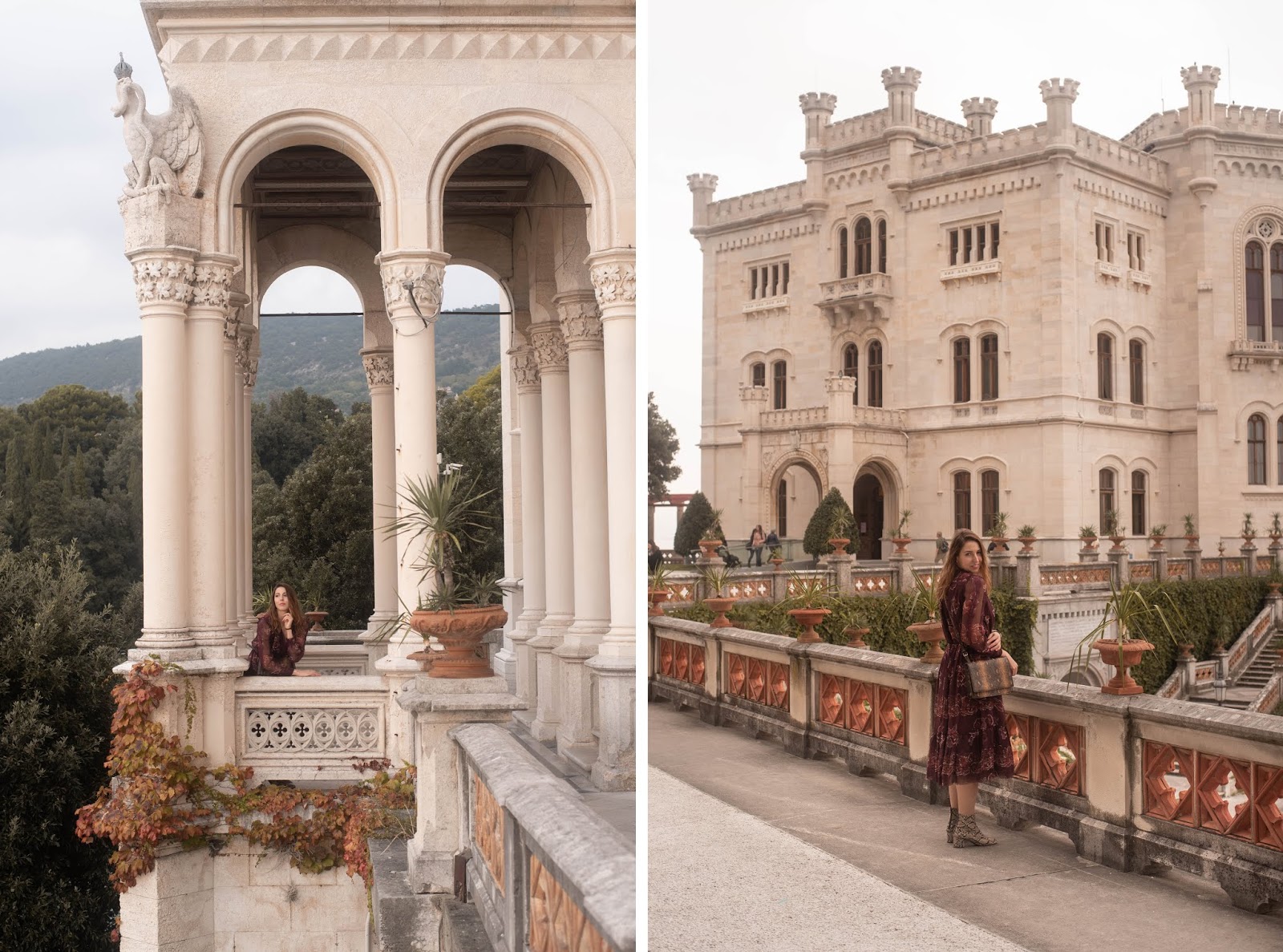 Tam jsme nakonec měli i namířeno, chtěli jsme si udělat zastávku v Trieste, kde jsem předtím nikdy nebyla. Než jsme přijeli do centra, nešlo neminout zámek Miramare na břehu moře, jako vystřižený ve stylu Windsoru nebo naší Hluboké. Krásné romantické místo. Zrovna jsme to tu stihli před západem slunce. Bývala to kdysi letní residence Habsburků. Zámek obklopují velké zahrady, olivovníkové háje a altány plné růží a květin. Jestli někdy uvažujete o svatbě u moře, koukněte na tohle pohádkové místo...