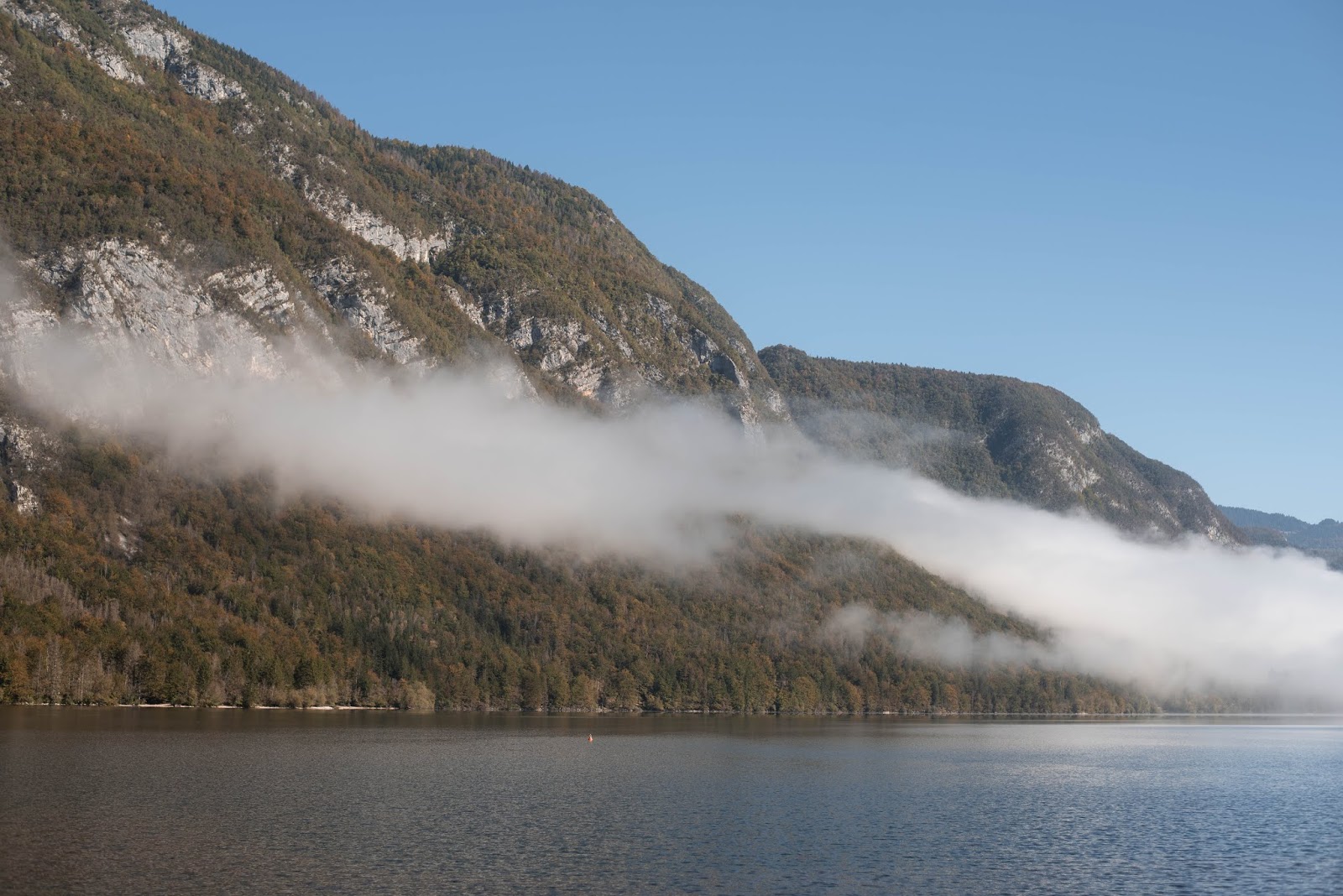 Druhý den jsme nikam moc nespěchali, vlastně málokdy se nám chce na dovče vstávat brzo, abychom něco stihly, apod. Vypravíme se vždycky nejdřív až tak na desátou. Raději si užíváme pohodové ráno a společnou snídani. vypravili jsme se autem k jezeru Bohinj, které nad sebou mělo ještě raní opar mlhy. Od jsme si to pak zamířili k vodopádům Savica, které jsou jedním z dalších must see míst. Platí se sem vstupné, za to ale parkování bylo zdarma. Je to hodně turistické místo, nahoru vedou lemované cesty a schody, žádnou divočinu nečekejte. Na konci vás čeká zamřížovaný výhled na obří vodopád, který vyvěrá ze skály. Voda je z podzemní řeky, která protéká krasovou oblastí a vytváří různé jeskyně a podzemní jezera, do těch je ale přístup jen se speciálním vybavením a průvodcem. My jsme si vystačili s pohledem na jezero.
