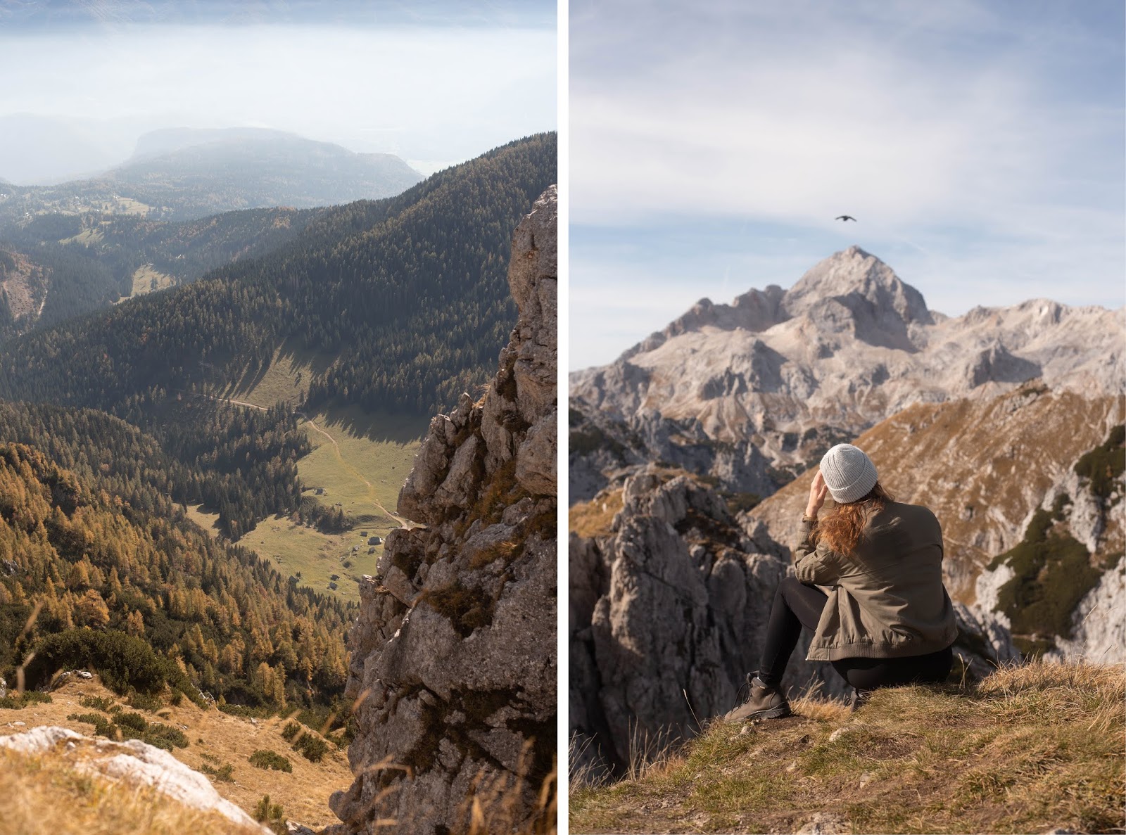 Druhé ráno jsem chtěl vstát na východ slunce a zažít bledské jezero pod oparem, ale nebyla jsem schopná vstát. Nachlazení mě dostávalo čím dál víc. Nakonec jsem se vyhrabala alespoň na snídani a byla jsem ráda, že jsem si zabalila věci na výšlap. Vypravili jsme se totiž na tůru na Vyševník, 2050 metrů vysoká hora v Julském pohoří. Není to tak turisticky exponovaná trasa, jako jiné, které vedou přímo pod Triglav, nejvyšší horu Slovinska. Výšlap na Vyševník není nijak extra náročný, dá zabrat, o tom žádná, když je na podzim mokrá zem, tak se nevyhnete ani kluzkému bahnu, ale všechno se to dalo zvládnout. Většinu trasy jsme měli krásné výhledy, ten zasloužený nás čekal ale až na samotném vrcholu, protože máte výhled do všech stran. A hlavně na Triglav, který se před váma zjev jak na dlani. Lidí tu s nám bylo akorát. Dokonce byl i prostor udělat si pár fotek na památku. Nahoře celkem fouká, tak se na to vybavte. Vyševník jsme si sešli druhou stranou, než jsme přicházeli a měla jsem celkem respekt, protože byla vysypaná celá drobným kamením a štěrkem. Nic pro povahy, které s lezením po horách nemají moc zkušeností, noha vám sklouzne ani nevíte. Naštěstí jsme si to postupně sešli bez nehody, načepovali horskou vodu a pokračovali zpět k autu. Mezitím se nám otevřeli podzimní výhledy do údolí. Tenhle výšlap rozhodně doporučuju.