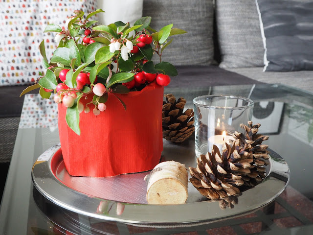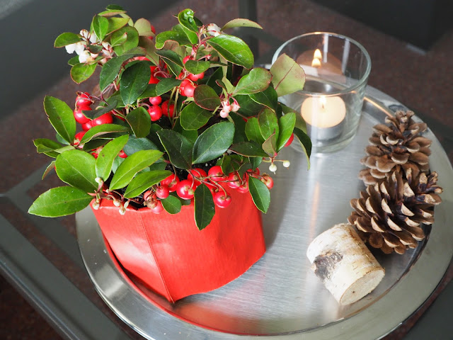 … v Ikea jsem koupila kytičku s červenými bobulkami. Jmenuje se Gaultheria, neboli Libavka (našla jsem na netu, jinak bych to nevěděla ?) …