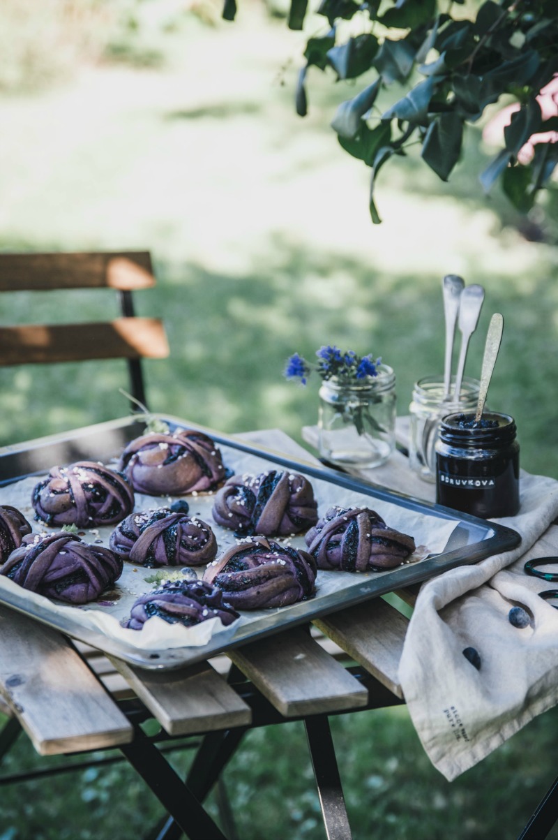 Už delší dobu jsem se na tenhle pokus chystala. Inspiraci jsem našla na netu a tak mě nadchla, že jsem musela vyzkoušet. Upekla jsem pletence nebo šneky, říkejte si jim, jak chcete. Na tom by nebylo nic zvláštního, že? Až na to, že jsou trochu fialové :-). Rozhodně zaujmou na první pohled. Doma jsem samozřejmě neřekla, co mám v plánu. První zkoumavé reakce se objevily při fialové barvě mléka na kvásek a druhé po upečení. Fialově zabarvené těsto vypadá prostě na první pohled nezvykle a zajímavě.