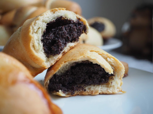 … po loňské zkušenosti s Martinskými rohlíčky (tady) se tyto dělaly výborně, jsou chutné a vyšly napoprvé. Recept jsem našla v časopise Albert v kuchyni. Dodržela jsem ho přesně, jen jsem do těsta přidala panáka rumu a nepoužila cukr moučku, ale třtinový a pro příště přidám do makové náplně rozinky. Ty mi tam dost chybí …