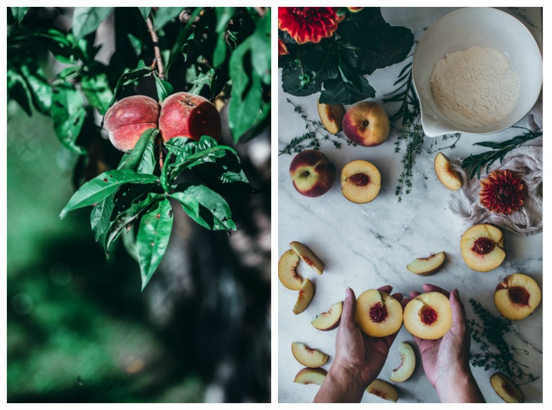 Léto se přehouplo do své druhé poloviny. Na zahradě dozrává spoustu dalšího ovoce a je čím dál těžší vymýšlet, co nového upéct. Tento víkend jsem opět sáhla po broskvích. Mám ráda jejich chuť a také to, jak jsou krásně šťavnaté, když jsou zralé. Nemám ráda překombinované chutě, ale ráda kombinuju ovoce s bylinkami.