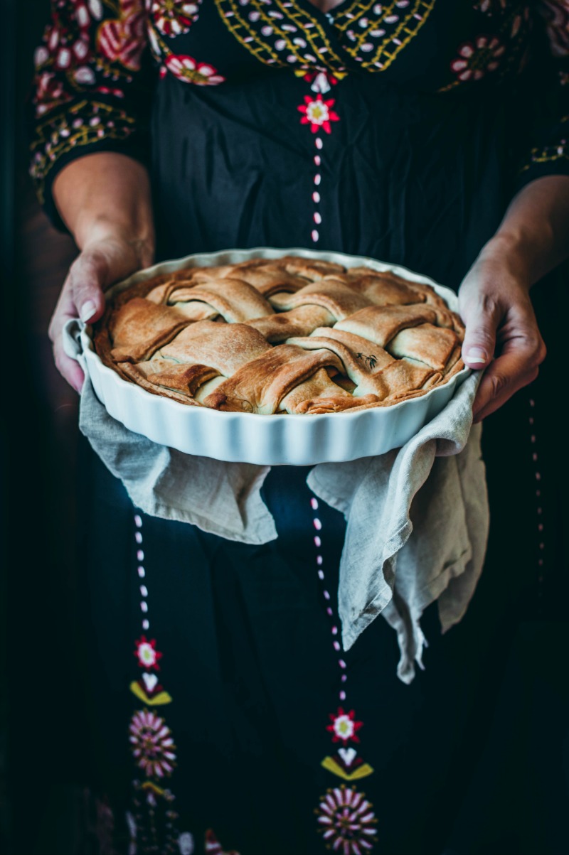 Z druhé poloviny těsta vyválíme také tenkou placku, kterou nakrájíme na plátky a postupně je klademe do mřížky. Přebytečné okraje opět odřízneme.