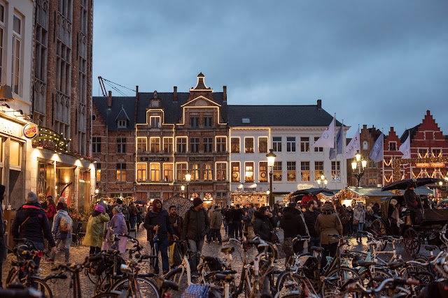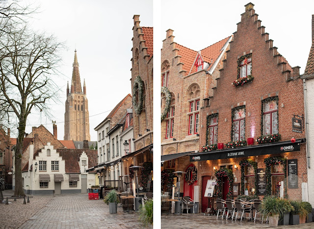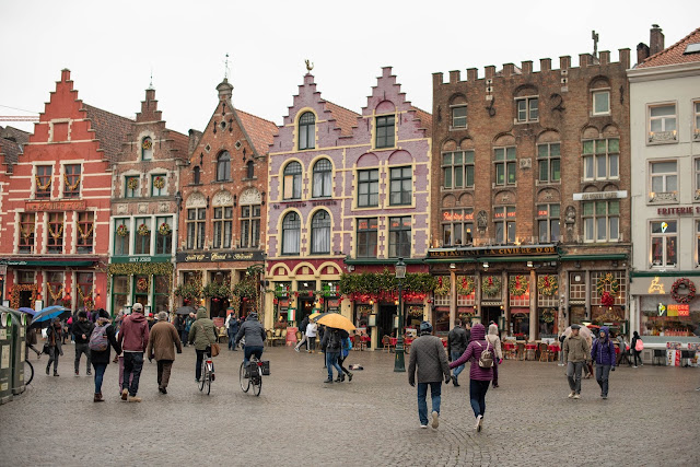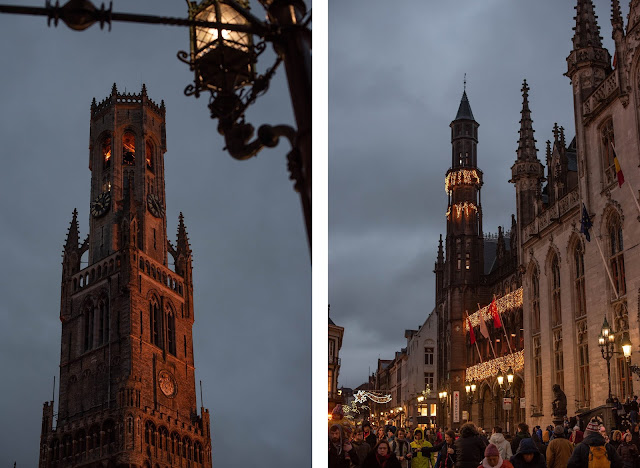 Nebudu vám popisovat, kam všude se vydat a co všechno musíte vidět. V Bruggách máte všechno jak na dlani, stačí si projít staré centrum obehnané řekou a nic důležitého neminete. Hlavní náměstí s trhy, obchody a restauracemi se jmenuje Markt, je obehnané barevnými domečky, teď je to tu celé vánočně vyzdobené světýlky, stánky a dokonce tu mají kluziště. Na náměstí je 83 m vysoká věž Belfired, ze které budete mít krásný výhled. Kdysi mývala dřevěnou střechu. My na ní kvůli špatnému počasí nešplhali, nebylo by z ní ten den kvůli dešti nic moc vidět. Neminete ani náměstí Burg s justičním palácem, radnicí a bazilikou sv. Krve, kde se podle zvěstí nachází ampule s krví Ježíše Krista. Je tu i muzeum medicíny, spousta kostelů a katedrál. Pusťte si doma film V Brugách a uvidíte všechny zajímavá místa najednou. My si ho pustili na cestu zpátky, aby nám to v buse trochu víc uteklo.