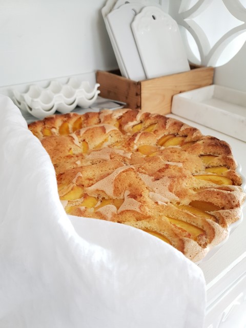 Piekla som s černicami z našej záhrady a s broskyňami, ktoré som dostala od kamarátky Evky.
