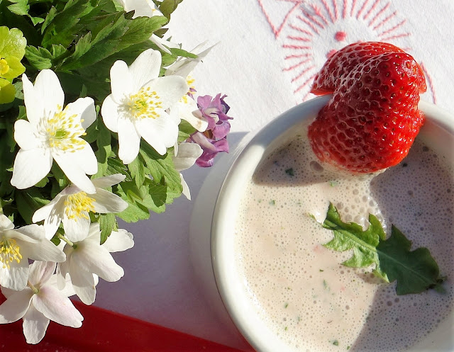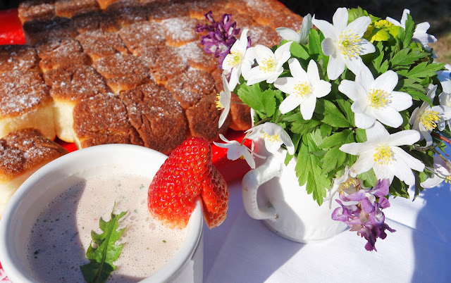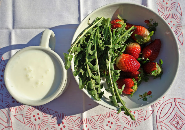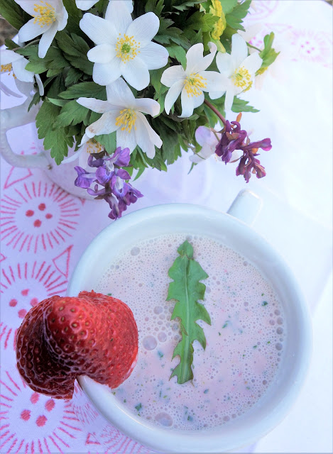 čerstvé listy pampelišky spolu s jahodami a kefírem jsem použila do smoothie….