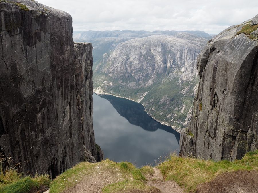 Myslela jsem si, že fotku z Kjeragboltenu mají všichni, ale na místě jsem zjistila, že spousta lidí si tam vůbec netroufne. Prostě přijdou k tomu šutru, uvědomí si, že se sakra spletli (jako já) a že jim ten hazard za ohranou turistickou fotku nestojí.