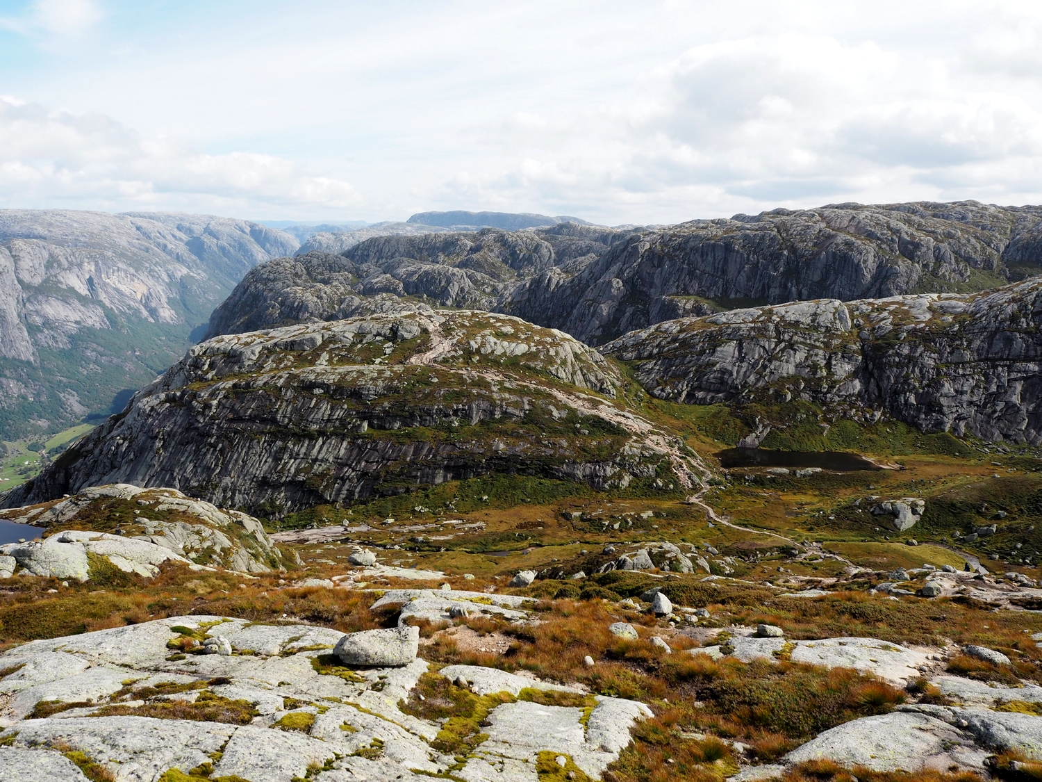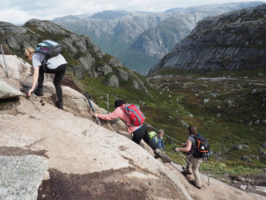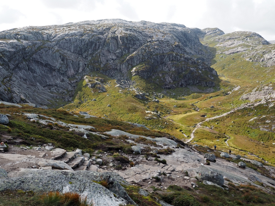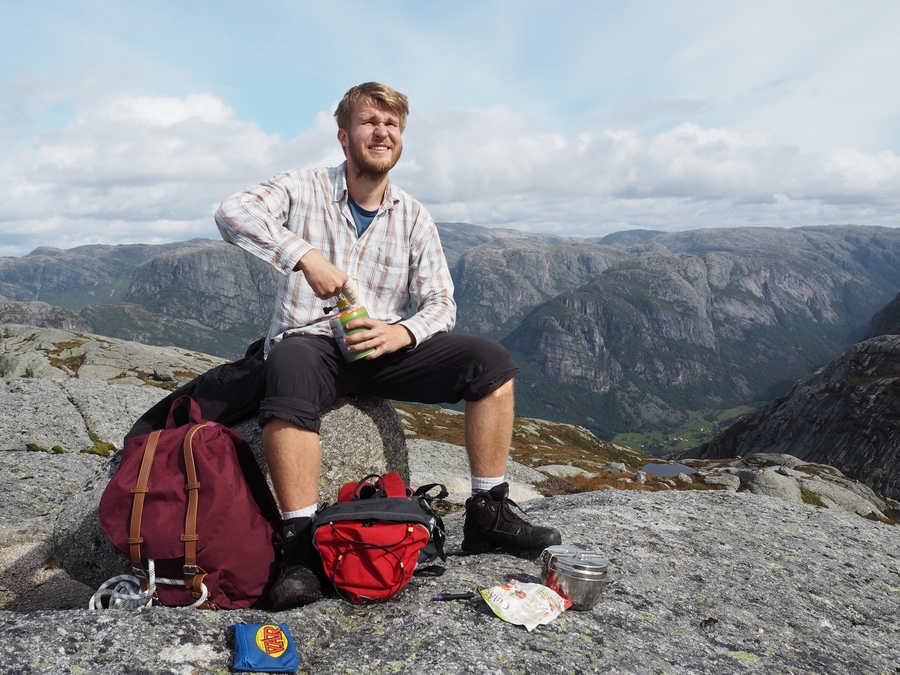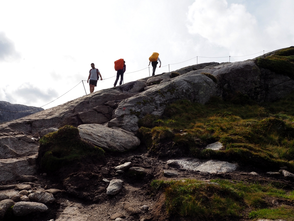 Z přístavu totiž vyšlapete 640 metrů k parkovišti Øygardstøl, od tam pokračujete do 825 m.n.m. na horu Litle Stordalen, pak dolů, pak zpět na další horu „jenom“ Stordalen (takže logicky ještě vyšší :D), pak zase dolů a pak KONEČNĚ na nejvyšší Kjerag ve výšce 1020 m.n.m, kde se nachází cíl vaší cesty – Kjeragbolten. #tochces #nopainnogain a tak dále 😀