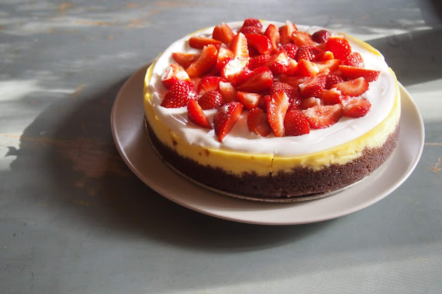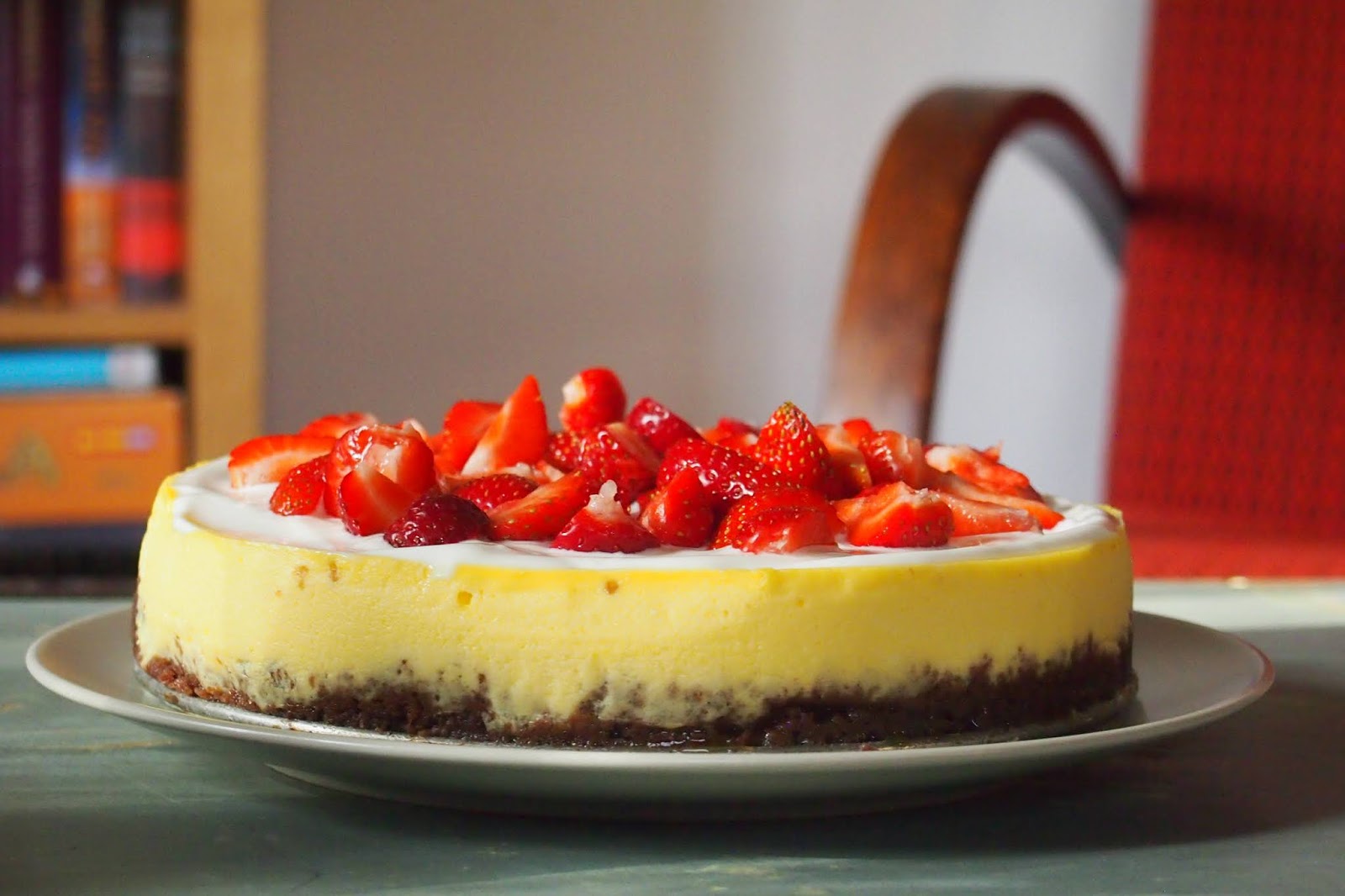 U nás doma nejoblíbenější dort - vláčný, osvěžující, nejlépe zasypaný hromadou čerstvého ovoce. A úžasně rychlý - jen je potřeba počítat jeden den navíc na výrobu domácí lučiny a ideálně i jeden den na odležení. Začátkem léta máme hned dva oslavence a letos se nám jahod bohatě urodilo, takže náš letošní první (a rozhodně ne poslední) cheesecake už čeká v ledničce.
