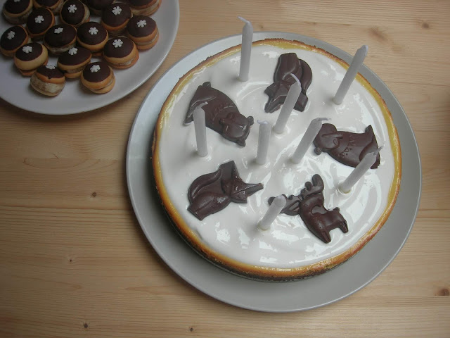 Původní recept mám už ani nevím odkud, ale v průběhu let jsem si jej dost upravila, takže už je to asi jedno. Nejvíce mi dala zabrat náhrada za sýr Philadelphia, který by v origo dortu měl být, u nás ale nejde moc sehnat. Tvaroh, ricottu i ostatní náhražky jsem zavrhla, nejvěrnější cheesecake chuť má podle mých dosavadních pokusů směs domácí a kupované lučiny.