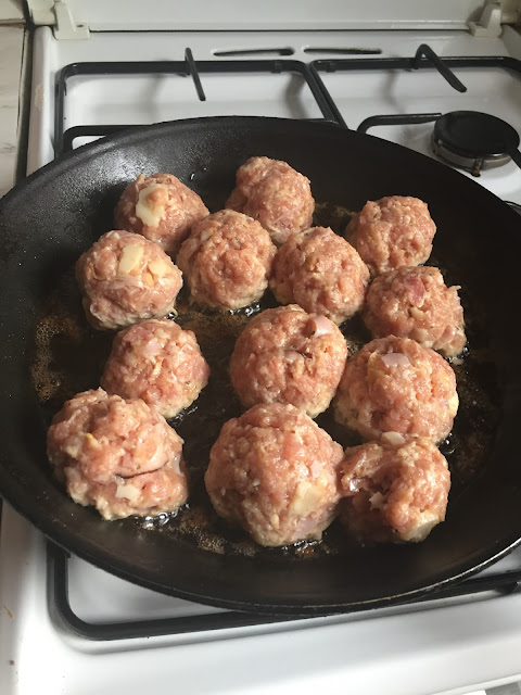 K to mu jsem udělala kuličky z mletého masa, do kterého jsem dala trochu provensálského koření a nadrobno nakrájenou slaninu.