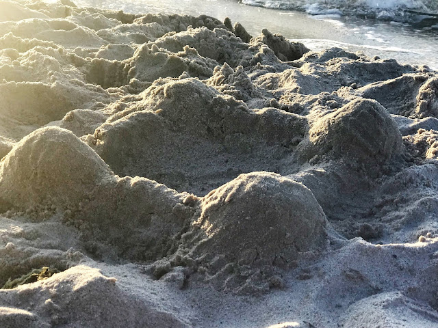 Písek je skvělý stavební materiál, doplněný o kameny, řasy, ptačí pírka vybízí kreativce k tvoření.