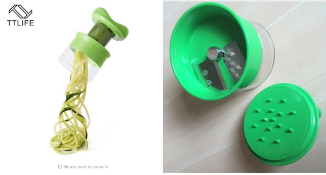 Myšlenka koupit spiralizér na zeleninu mě sváděla už delší dobu. Nakonec jsem neodolala a objednala si tento v přepočtu za 72 Korun (včetně poštovného). Tentokrát jde o produkt, který bych vám nedoporučila. Práce s ním je zdlouhavá, namáhavá a hrozí spíš ublížení na vlastním zdraví než perfektně připravené nudle.