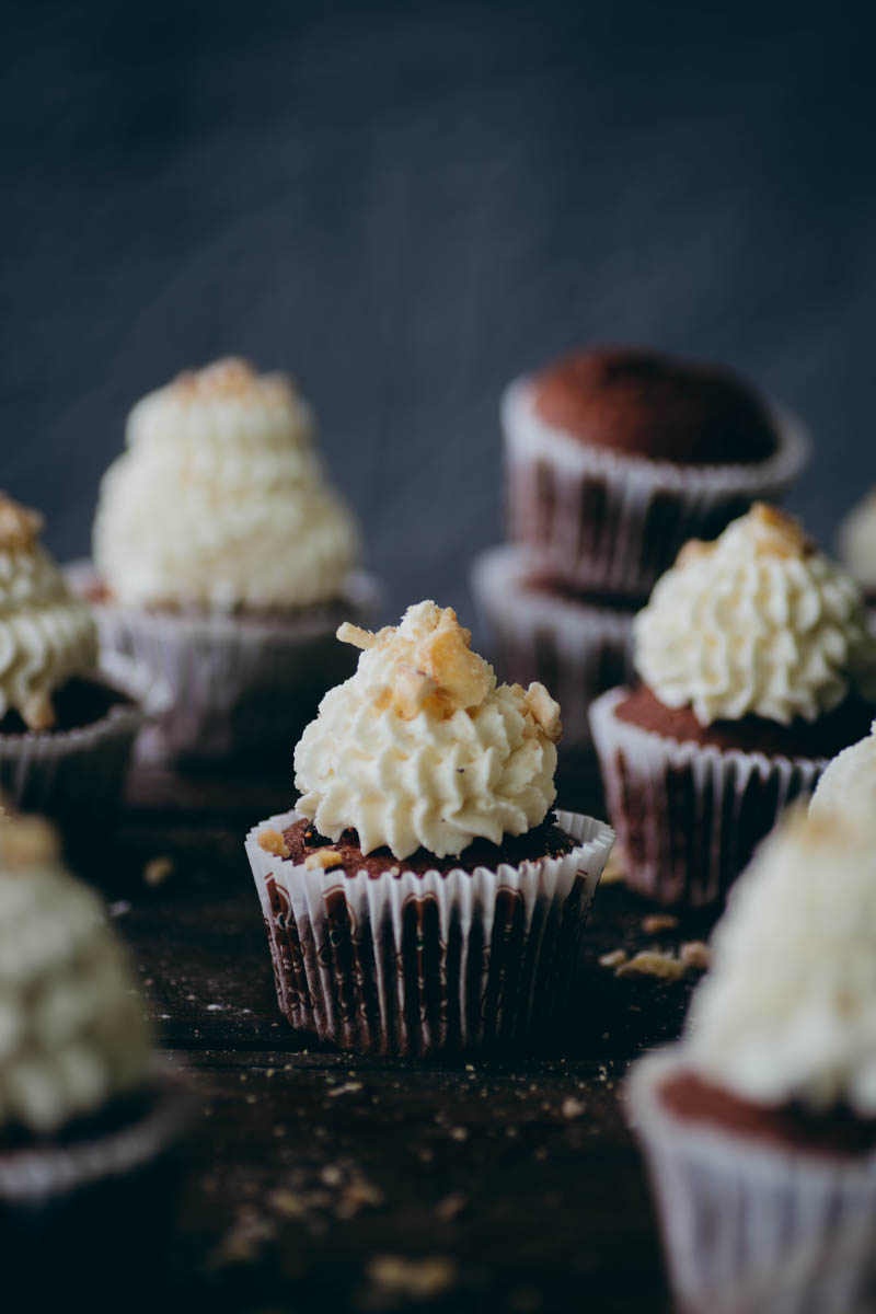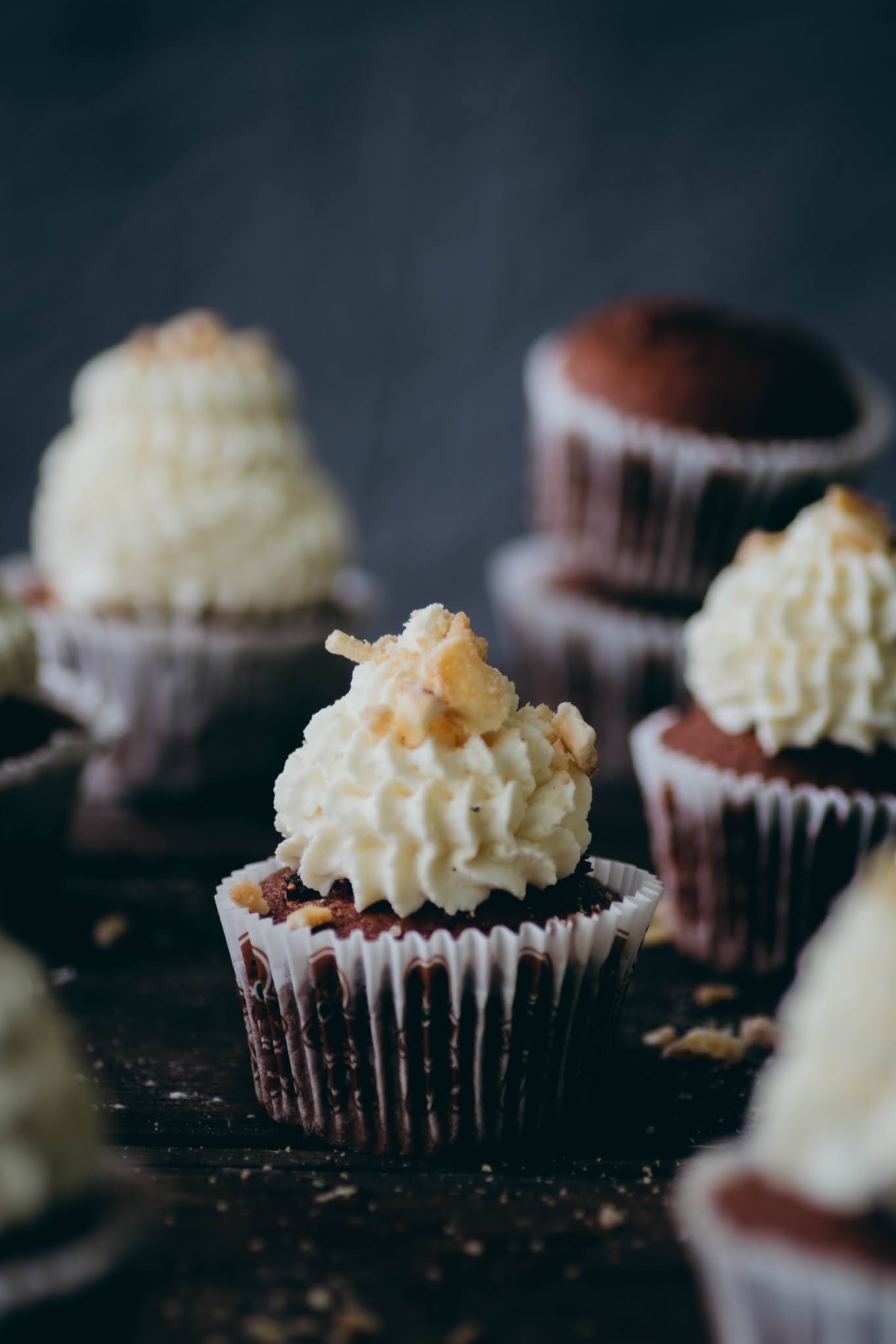 Samotné muffiny jsou neskutečně nadýchané. Aby vynikla jejich chuť, krém jsem vybrala jednoduchý a snad můj nejoblíbenější. Jednoduchý krém z mascarpone a smetany. K oslazení jsem tentokrát použila javorový sirup. A nakonec to nejlepší, cupcaky jsou posypané nadrcenými sušenými banány, které krásně křupou.