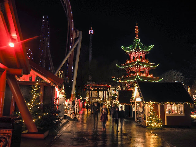 Tivoli. Nikdy mě to nelákalo do Disneylandu, ale tohle je naprosto něco jiného. Večer to má úplně kouzelnou atmosféru. Všude světýlka a vy si připadáte jako ve snu. Nevím, jak přes den, ale večer tu nenajdete otravné prodavače všeho možného, maskoty a další věci, které v zábavních parcích běžně mají a já je vyloženě nesnáším. Tady se můžete v klidu třeba jen procházet a nasávat atmosféru, nebo si koupit lístek i se vstupy na atrakce.