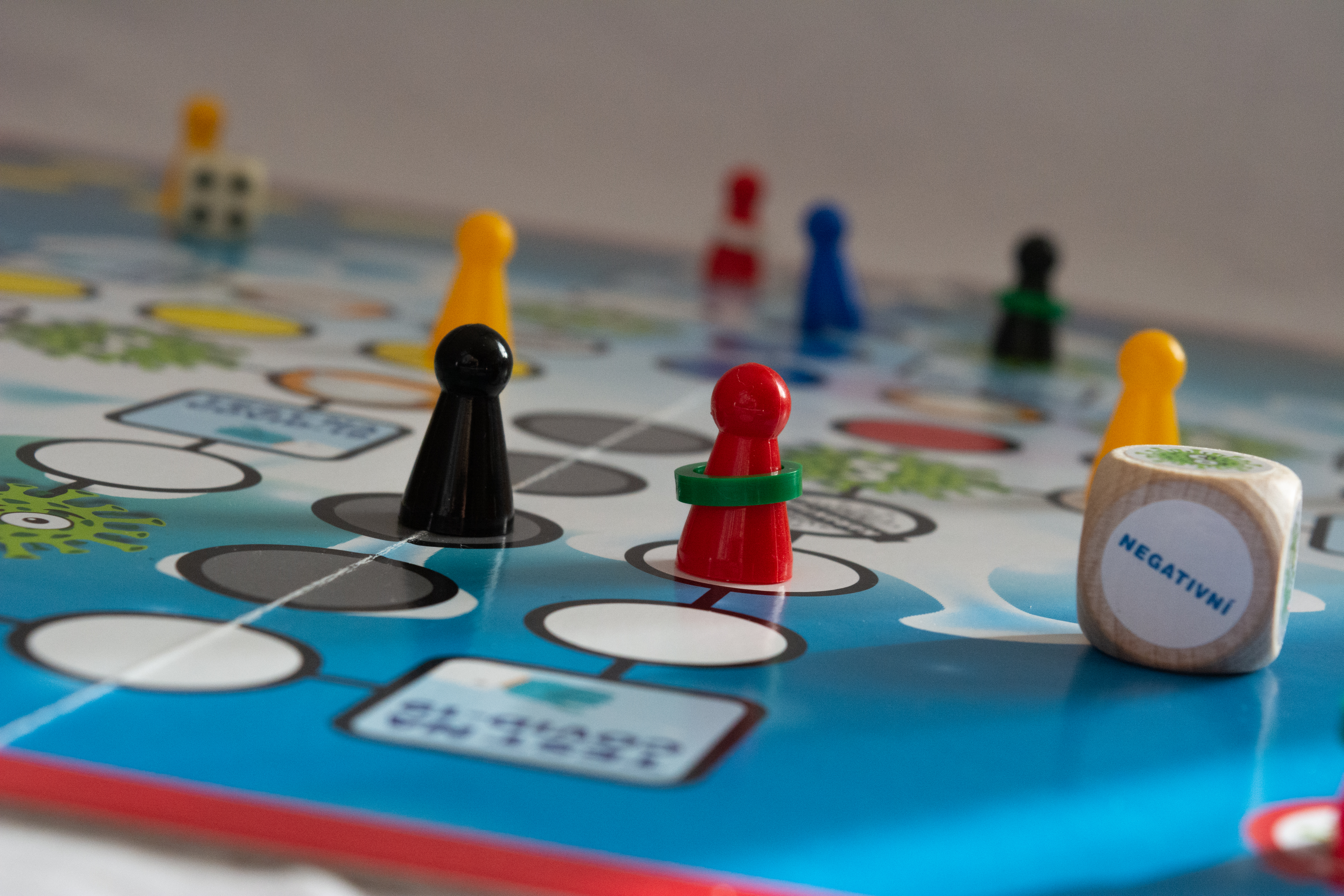 - A jak se Covidu zbavit, aby mohly figurky pokračovat do vytouženého útočiště? Jedině testem. Speciální kostkou, která funguje na stejný princip jako testy v reálném světě, tedy na náhodu, rozhodnete o osudu vašich figurek. Jakmile padne negativní strana, jste zachráněni! Jakmile padne Covid... víte, že se do domečku zas nějakou chvíli nepodíváte.