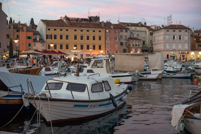 Jeden večer jsme si udělali výlet do krásného městečka Rovinj. Cesta vyšla skoro na hodinu, protože musíte z Vrsaru objet Limský kanál a moc jiných cest, jak se sem dostat, není, takže se trochu zdržíte. Ale stihli jsme to ještě za světla. Rovinj je malebný a tolik mi připomíná italská městečka. Ale taky čekejte, že je tu večer dost lidí.
