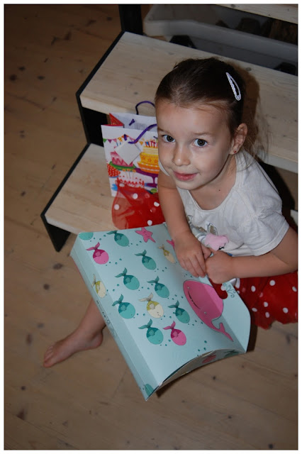Miluje koně a kočky (živé, plyšové i namalované), krémové zeleninové polívky, svou červenou, puntíkovanou točící sukni (děkujeme tetě Markétě) a všechny ostatní holčičí parádivosti. Červenou barvu aktuálně vyměnila za růžovou – asi nějaká školková davová záležitost. Má potřebu zdobit sebe i všechno kolem sebe. Máme už razítko medvídka na dvou trámech, fixkou vylepšeného houpacího koně a pár kruhů na zdech. Že prý byly předtím smutné..