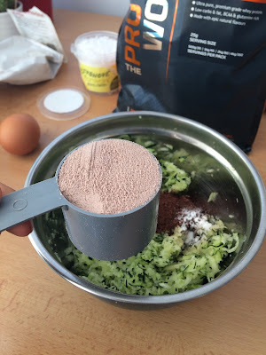Následně přidáme ostatní suroviny: kakao, proteinový prášek, sůl, kypřicí prášek, kokos, vejce, rozinky, ořechy, atd..