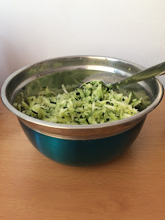 Cuketu nastrouháme na hrubo a posypeme špetkou soli. Necháme odpočinout.