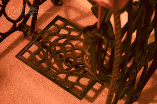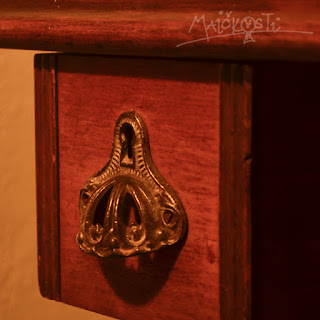 Teď trochu odbočka. Našim v obýváku už několik let stojí starý šicí stroj. Je vlastně můj – zdědila jsem ho. Jen zatím nebyl kam v našem malém podnájmu dát. Třeba se už brzy dočká a půjde konečně domů 🙂 Je po mojí prababičce a je skoro stejně úžasný jako byla ona (byla tak úžasná, že jsem po ní chtěla pojmenovat i svoji dceru, bohužel u manžela to nakonec neprošlo…). Miláček rodiny a silná žena, která se narodila ještě za monarchie, byla osmkrát těhotná, čtyřikrát porodila, přežila obě války, svého manžela a dokonce i jedno ze svých (tehdy již v důchodovém věku) dětí. Neměla žádné vzdělání, ale byla neuvěřitelně sečtělá a chytrá, ještě v 95 letech obhospodařovala zahradu nejen sobě, ale i svým sousedkám, které už na to byly – dle jejích slov – staré (ačkoli některé byly věkem mladší, než ona) a nikdy nezapomněla na narozeniny svých nejbližších (a to ty všechny děti, vnoučata a pravnoučata s partnery čítali okolo třiceti lidí). Kdykoli jste k ní přišli – třeba i neplánovaně – měla navařeno a napečeno. Celé rodině štupovala ponožky, zašívala límečky a přilepšovala z důchodu. Oslavili jsme s ní trojciferné narozeniny a nebýt toho, že si jednou časně z jara při špatném došlápnutí na ledu zlomila krček, zůstala upoutaná na lůžko a po pár letech v pečovatelském domě, kde už nemohla dělat všechno to, co měla ráda, odešla do nebe, možná bychom se z ní radovali ještě dneska. Když zemřela, bylo jí 101 let. Všichni jsme ji milovali a často na ni vzpomínáme. Alespoň já tedy pokaždé, kdy projdu kolem toho stroje. Už v době, kdy se ocitl u ní, měl kus historie za sebou. Dostala ho prý prababiččina teta svatebním darem. Takže si asi dovedete představit, jak starý může být. Je to opravdový klenot. Moc mě baví jeho zlatě malované ornamenty, litinové detaily a intarzie tvořící metr. Tehdy si to prostě uměli vymazlit! A co víc – stále šije. A perfektně! Umí sice jen jeden steh a vyžaduje pro svůj chod lidský pohon, ale přešije všechno, i kůži. Jednou bude mít v mém domě čestné místo.