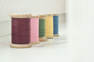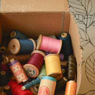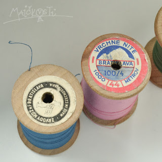 Před několika měsíci se prababiččina dcera (sestra mého dědečka) stěhovala i s manželem do domova důchodců. A u mě přistály další poklady. Další kus rodinné historie. Kabelka po prababičce plná lejster o koupi pozemků, rodných listů, faktur za pohřby rodinných příslušníku a několika receptů. Moje archivářské srdce poskočilo blahem! O měsíc později teta poslala další dědictví. Po sousedovi, kterýžto byl krejčím, měla ve sklepě plnou krabici nití. Na starých dřevěných špulkách, zářící všemi barvami. Jenom od modré tam bylo aspoň deset odstínů. Rovnala jsem je vedle sebe a přišly mi tak zajímavé, že by si určitě zasloužily, abych z nich něco vyšila. Jenže v tu dobu nebyl ani čas, ani nápad. To až teď, když jsem zůstala na týden 200km od našeho bytu, od notebooku a od kamarádek. A svědily mě ruce. Já prostě nevydržím jen tak sedět a nedělat nic. A tak, když dítě zrovna spalo, chopila jsem se jehly a nití. Co z toho nakonec vzniklo? Uvidíte příště 🙂