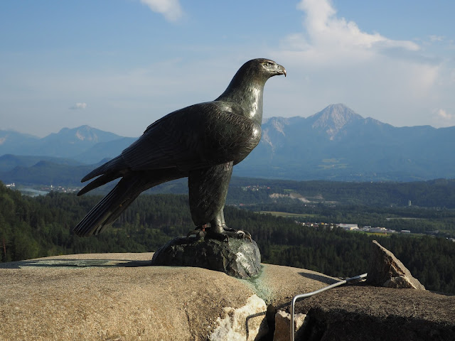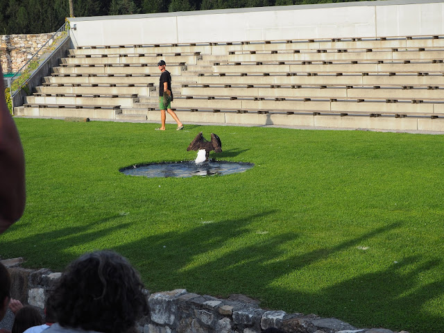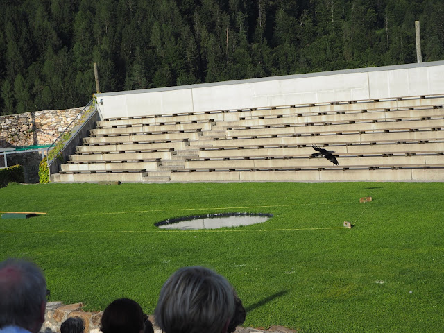 … je to show dravých ptáků. Jsou vycvičení a tenhle „Rumburak“ (obrázek dole;-)) slyší na jméno Isabel. Když předvedla své číslo, cvičitel ji nechal ještě chvíli proletět kolem hradu a pak zavolal její jméno. Byla švihem u něj …
