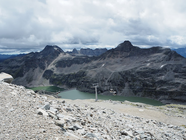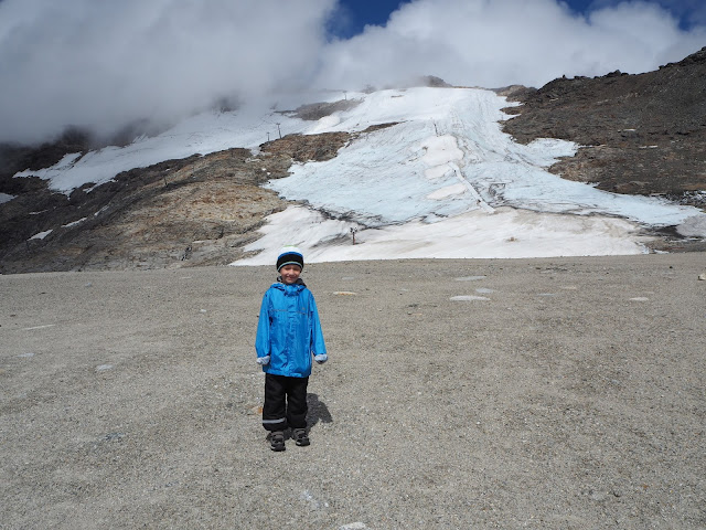 … je fakt, že vloni jsme skoro ani nevylezli z lanovky jak tam fučelo a byla mlha, že by se dala krájet a letos jsme se kolem ledovce i porozhlédli. Teda část naší skupiny. Rosťa s velkými dětmi byli na túře, my ostatní jen tak kolem lanovky …