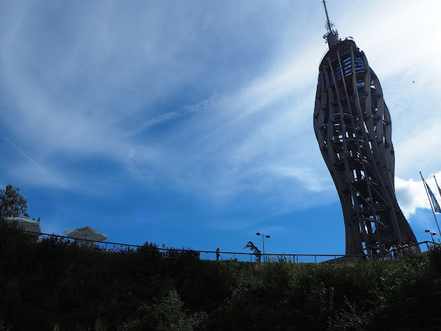po muzeu vláčků jsme se jeli na Pyramdenkogel. Je to stejným směrem a dá se to v pohodě stihnout. Na mě tam bylo nezvykle moc turistů. Jsem totiž zvyklá, že všude jedeme na poslední chvíli a to většina turistů už je na odchodu. Má to sice výhodu, že jste na atrakci skoro sami, ale já nedávám manželův časový rozvrh, vracet se domů až kolem desáté. Proto jsem využila toho, že tady s námi jsou Marek s Nikčou a jezdila jsem s nimi ……