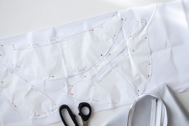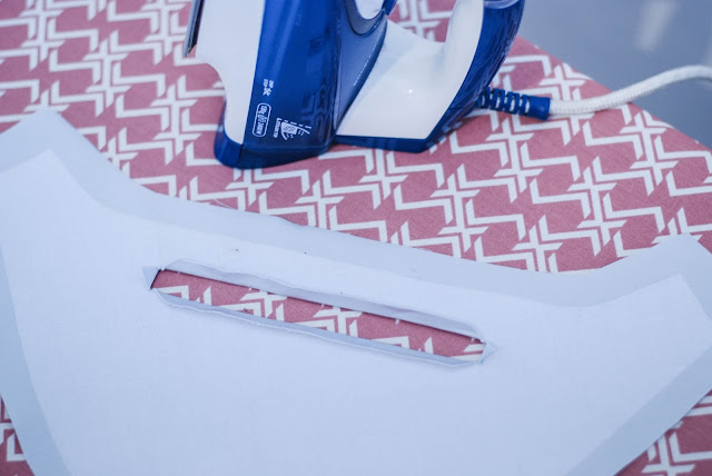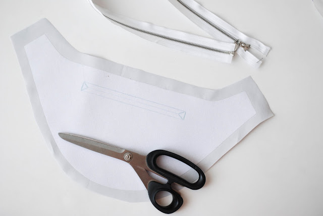 Já jsem si podle střihu vystřihla z nažehlovacího plátna všechny tři díly. Přesně podle tvaru. Tam, kde je průstřih na kapsu, tak jsem si předkreslila její tvar. Délka je podle zipu, který na kapsu máte.